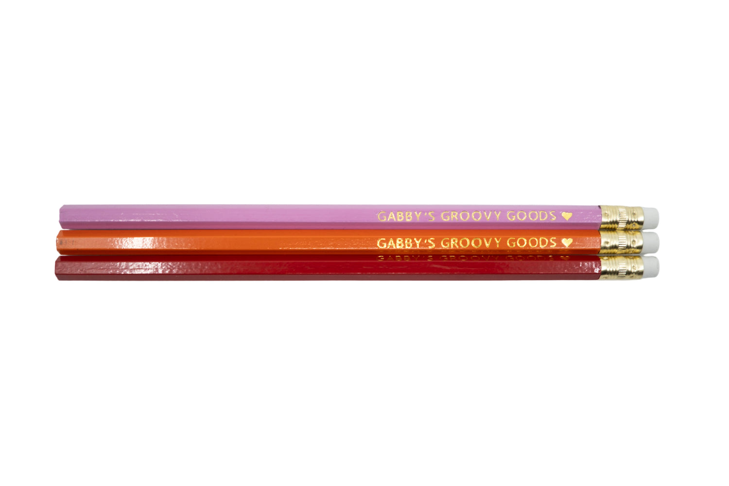 All pencils are hand stamped by Gabby. You can personalize color and names/phrase! Comes in packs of 3, 6, or 12 (larger quantities also available for bulk orders)